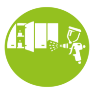 Kitchen cupboard spraying involves the professional application of specialist paint to your existing kitchen cupboards using HVLP spray equipment.